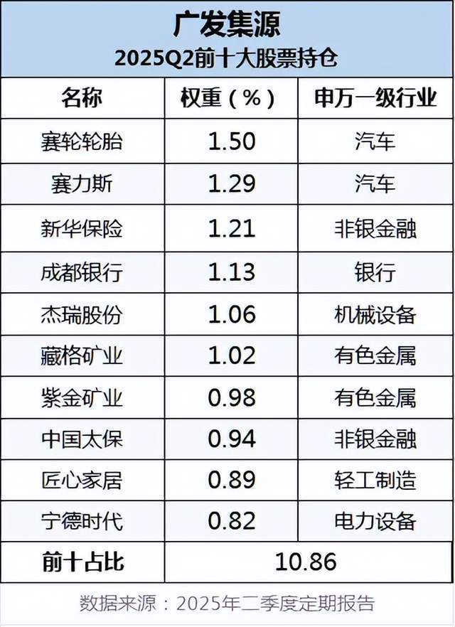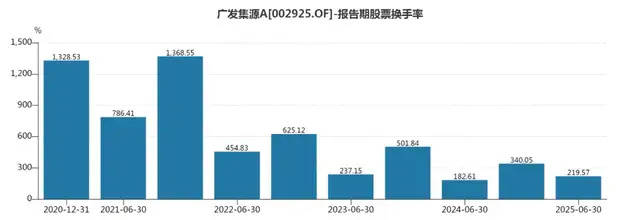 下图为广发集源近5年的股票换手率情况,历史换手率高于市场平均水平,表明基金经理倾向于灵活调整持仓个股。(2020年报至2025中报,数据来源:Wind)