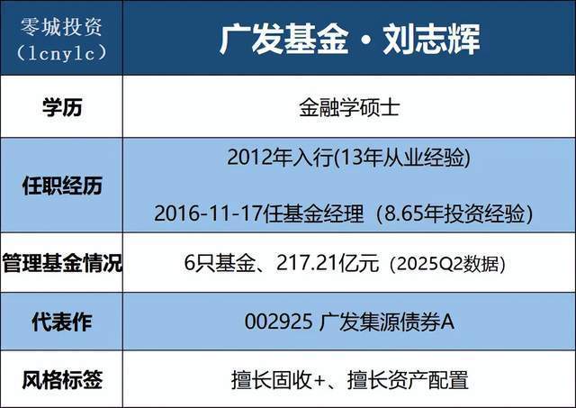 从其在管产品和历史业绩来看,刘志辉管理的基金涵盖中短债、长债、二级债基、偏债混,能力圈宽广,比较擅长的方向是平衡型“固收+”。