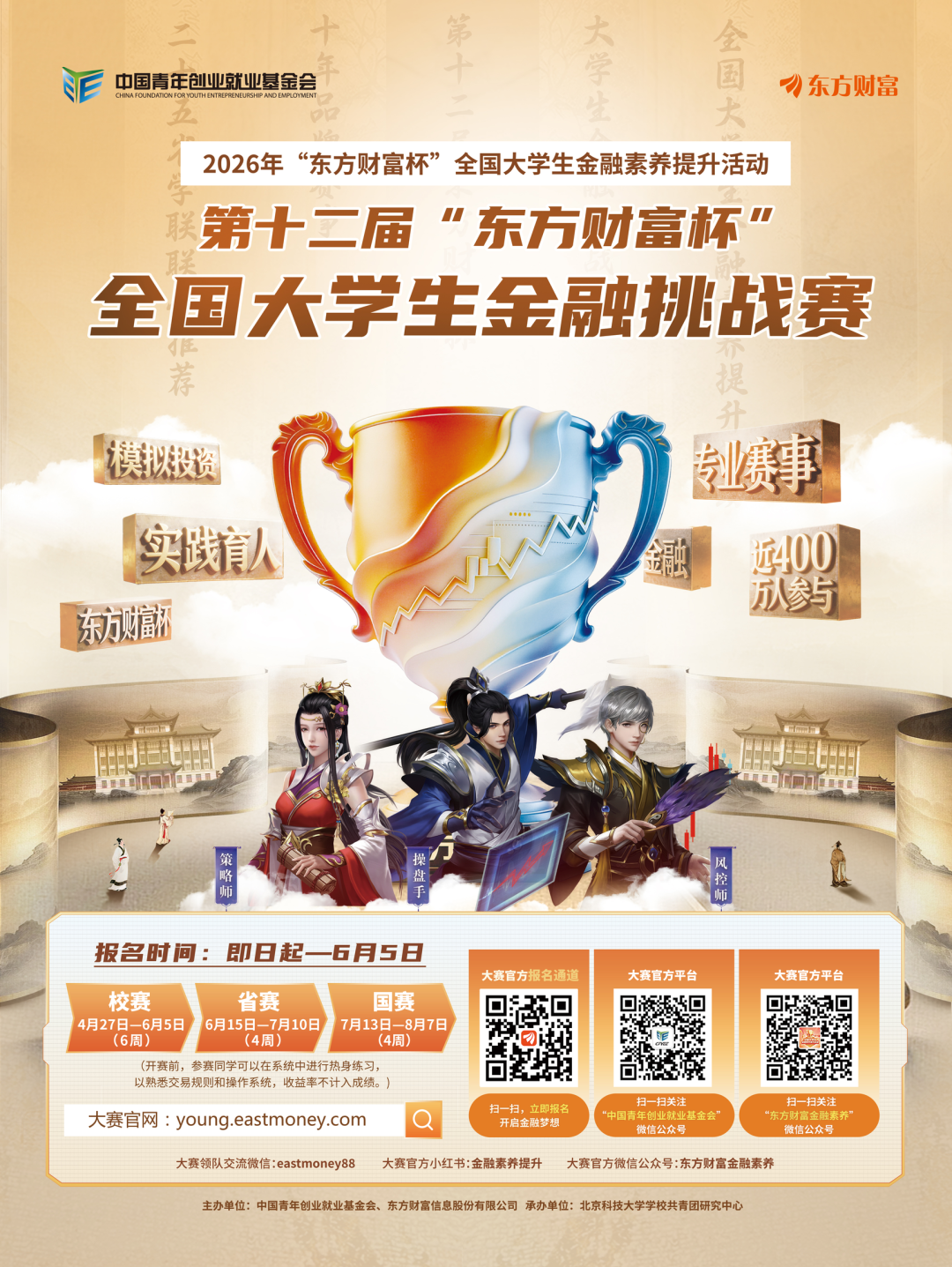 2026-04-10开云体育,开云体育官方网站,开云体育APP下载近日,由中国青年创业就业基金会、东方财富信息股份有限公司联合主办的第十二届“东方财富杯”全国大学生金融挑战赛拉开帷幕。大赛面向全国高校学生开放报名,以模拟交易为核心,搭建起集知识学习、技能实训、竞技比拼于一体的金融实践平台,旨在引导青年学生将金融理论与市场实践深度融合,提升金融素养与实操能力,为金融强国建设积蓄青年力量。