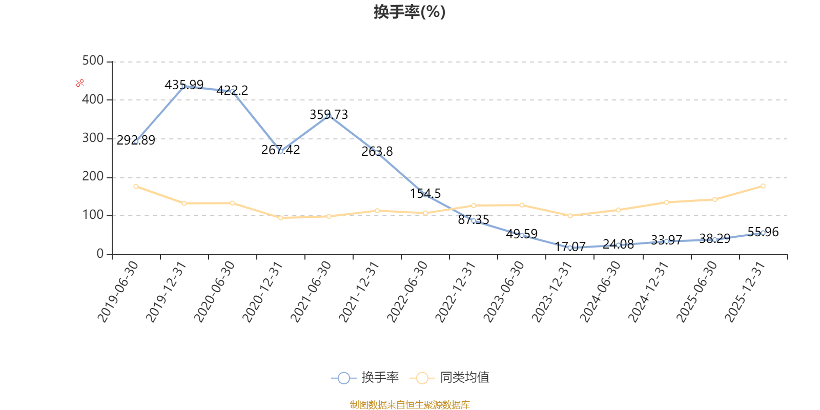 截至2025年12月31日,基金最近一年换手率约94.02%,持续3年低于同类均值。