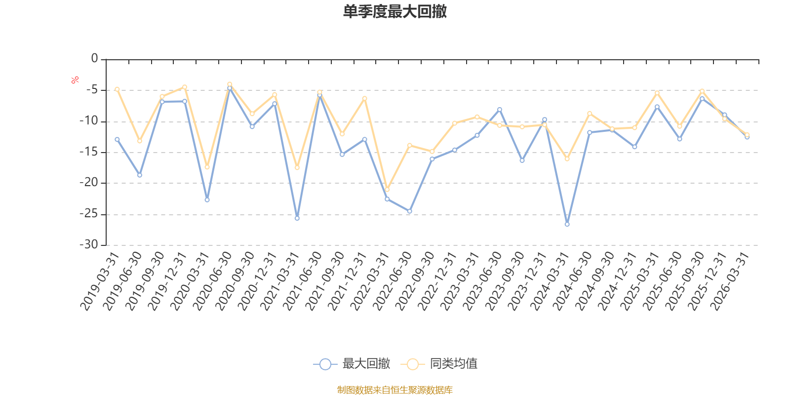 截至4月9日,基金近三年最大回撤为40.1%,同类可比基金排名152/178。单季度最大回撤出现在2024年一季度,为26.63%。