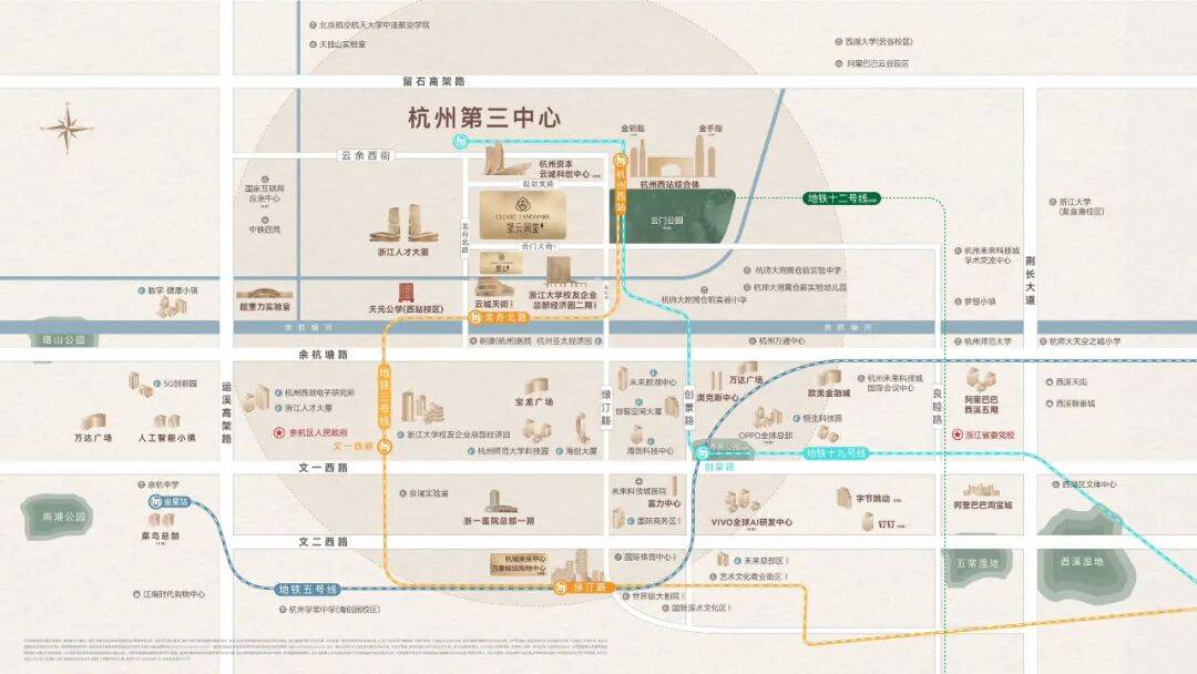 项目紧邻15年制的天元公学西站校区,板块内杭州外国语学校、锦绣育才、杭师大附属仓前实验幼儿园小学中学等学府环伺。