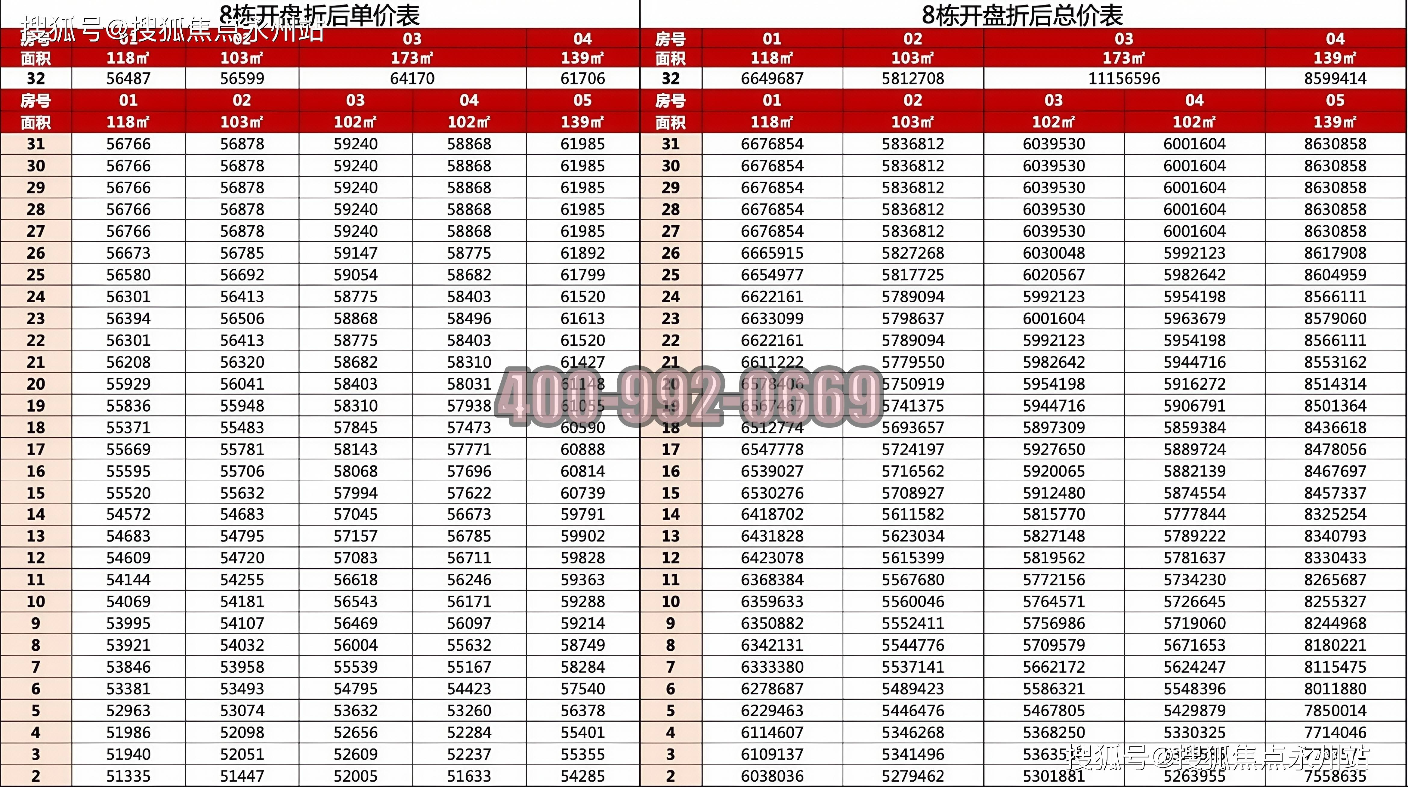 139㎡户型:31 套,折后总价 756-863 万元,单价 5.4-6.2 万元 /㎡,高区单价较低区溢价约15%。