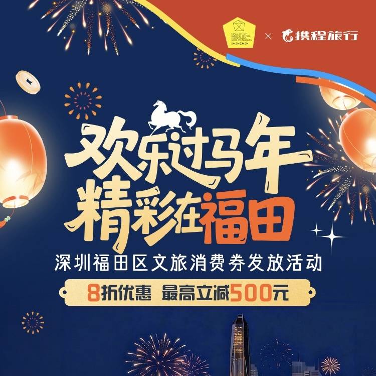 酒店宴席、酒店民宿、景区玩乐全覆盖,多平台发放,折扣立减,福田新春出行消费超划算!携程文旅消费券:8折立减,最高500元