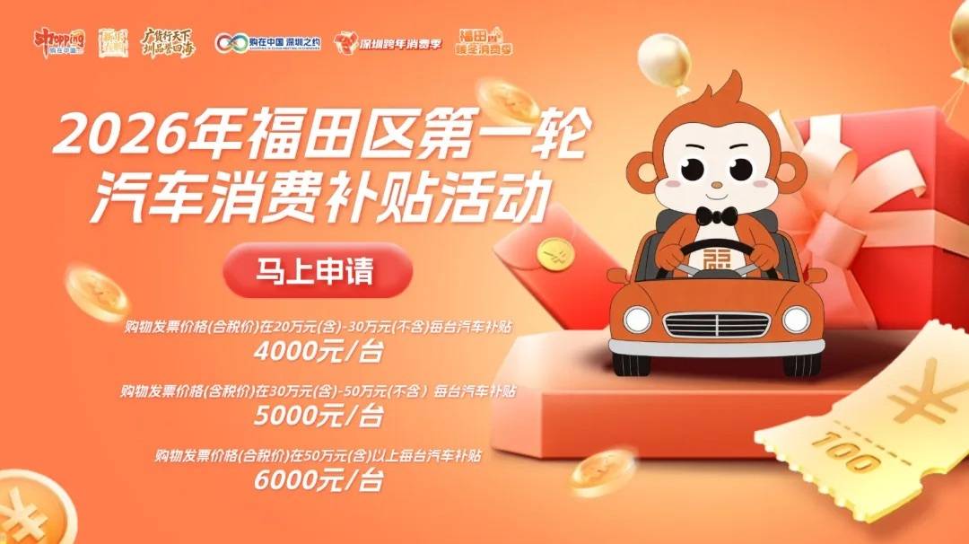 2026福田区首轮汽车消费补贴重磅来袭,总额1000万元先到先得,还能叠加国家、省、市补贴,买车正当时!