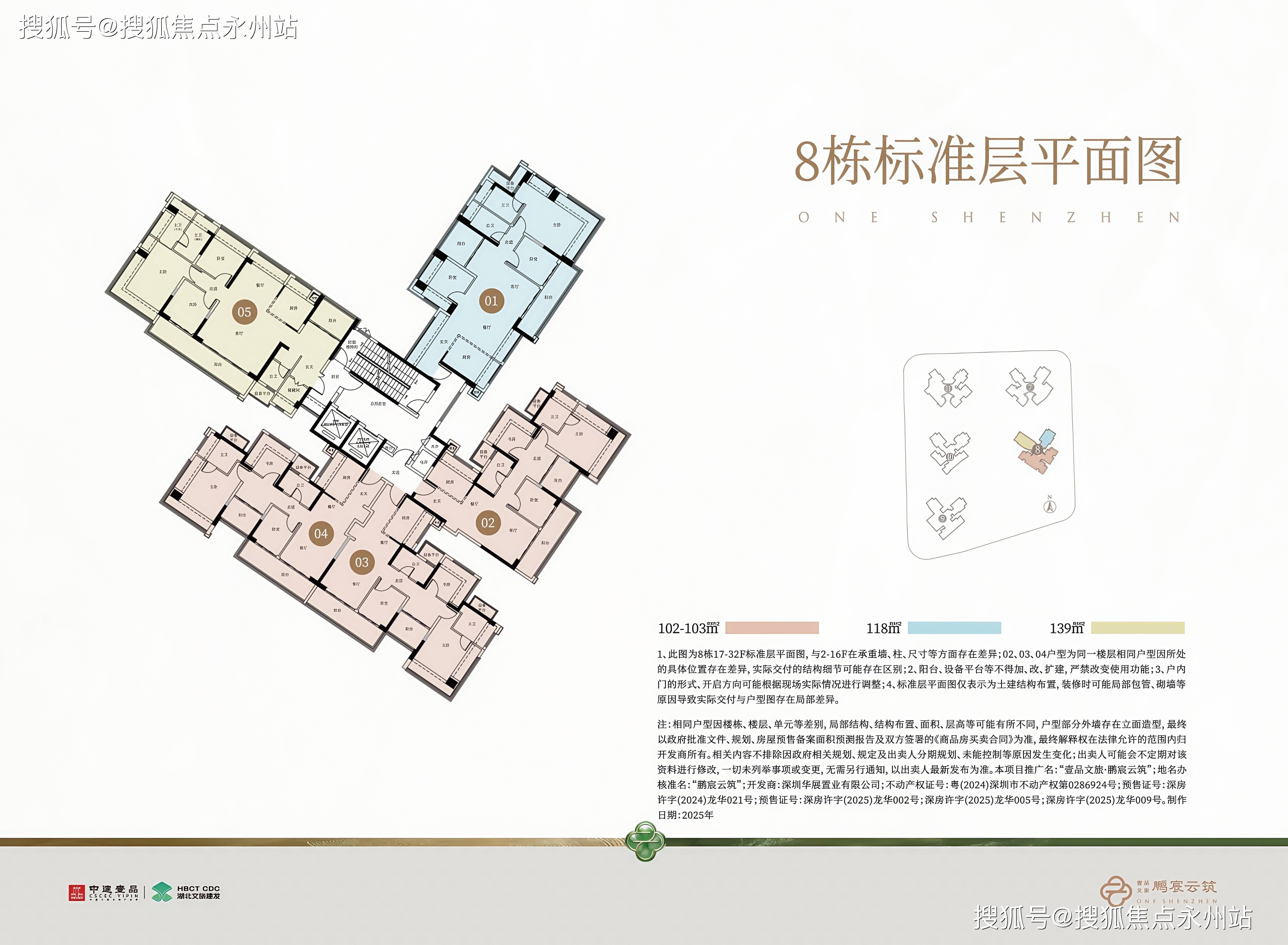,其中1栋住宅45F,2栋住宅44F,7栋住宅47F,3栋/5栋/6栋/8栋/10栋32F,11栋住宅46F,4栋规划商业,另规划有1所12班制的幼儿园。整个项目规划户数为1992户,其中东区1016套,西区976套,全部都是规划的商品房,涵盖了多种户型设计。其中,6栋、8栋、9栋和10栋的高层住宅采用2梯5户设计,3栋和5栋为2梯6户,而1栋、2栋、7栋和11栋的超高层住宅则采用3梯6户设计。(深圳龙华中建鹏宸云筑售楼处电话:)