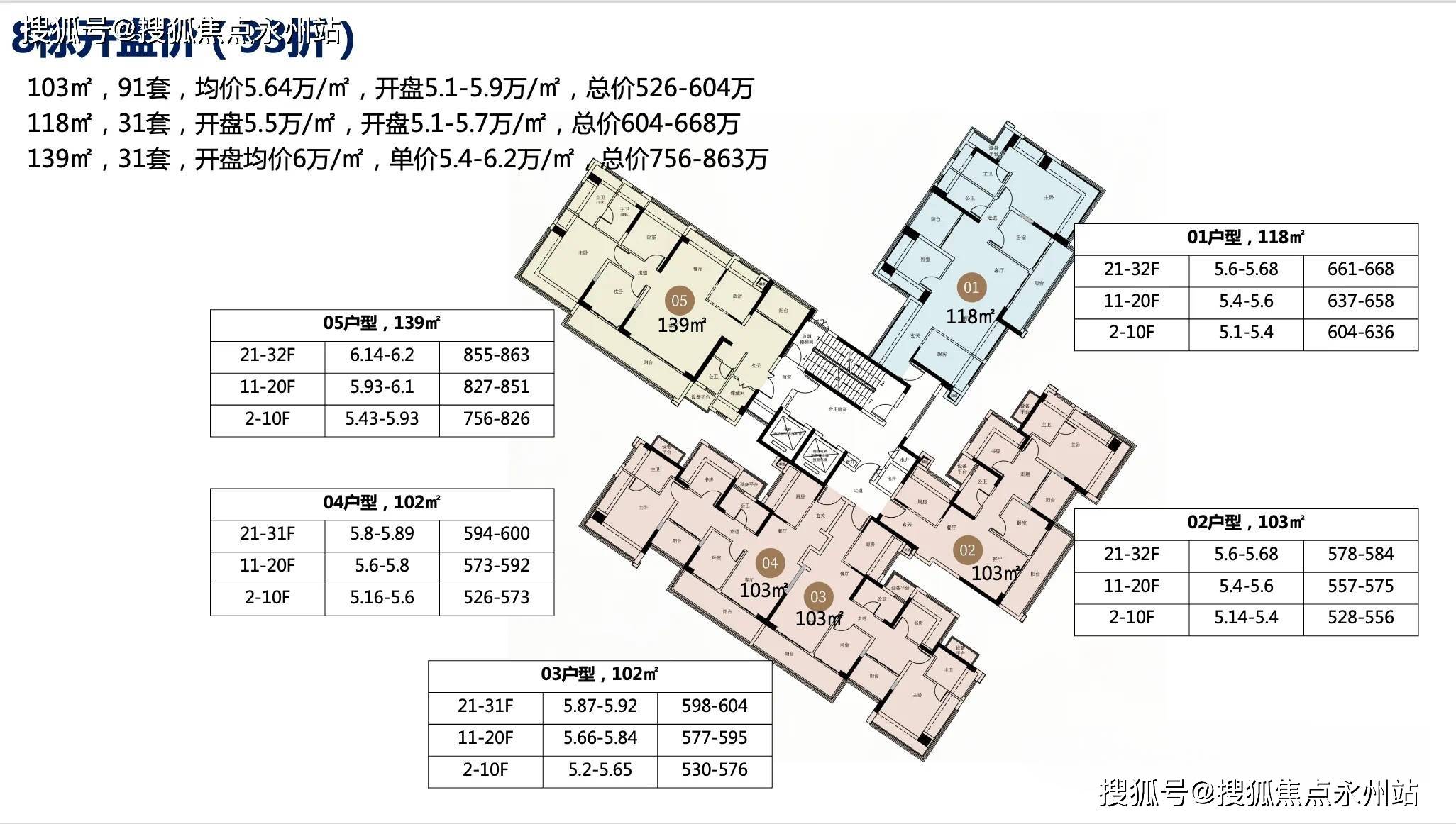 139㎡户型:31 套,折后总价 756-863 万元,单价 5.4-6.2 万元 /㎡,高区单价较低区溢价约15%。