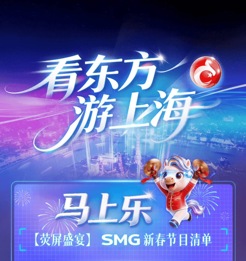 丙午马年,春满东方。上海广播电视台邀您“看东方 游上海”,策马赴新程!大小屏协同、线部影视剧、逾百场演出及线下活动,让大家在春节长假的视听盛宴中感知上海魅力!