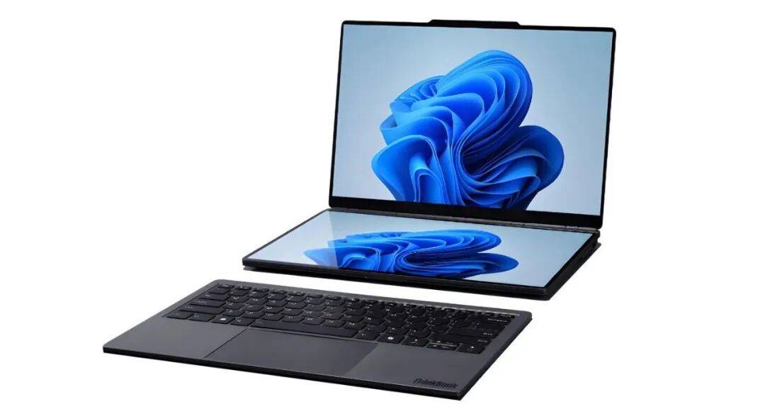 联想将展示一款名为「ThinkBook Modular AI PC Concept」的概念设备。其创新之处在于掌托区域被设计为可更换模块的空间:用户可以选择常规键盘模块,也可以换上第二块显示屏模块,实现上下双屏的形态。