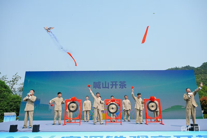 深挖千年茶俗,文化传承亮点凸显,让古老茶脉焕发新活力。启动仪式上,庄重的敬茶仪式如期举行,9位中国制茶大师、安溪铁观音大师手持清茶,向天地、茶祖行礼,践行传承千年的茶俗礼仪,传递茶人对自然的感恩与技艺的坚守。喊山开茶仪式上,由安溪铁观音国家级非遗技艺传承人魏月德、安溪铁观音大师刘金龙共同喊出安溪好茶开采上市的最强声音!兴溪茶场、大银峯茶场等分会场线上同时开采,舞台上空飞马腾空,踏云而起,预示着安溪茶产业蒸蒸日上、一马当先、奋勇向前!无人机上“贯彻落实‘三茶’统筹理念”“打造中国现代茶业标杆”横幅飘扬,祈愿安溪风调雨顺、芽硕叶茂,安溪茶产业欣欣向荣、再谱新篇!