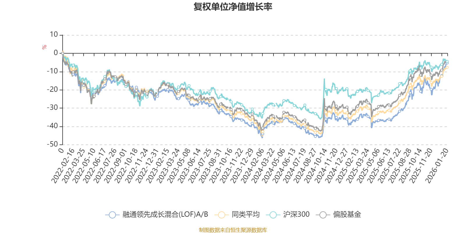 截至1月20日,融通领先成长混合(LOF)A/B近三个月复权单位净值增长率为19.73%,位于同类可比基金12/185;近半年复权单位净值增长率为40.18%,位于同类可比基金30/185;近一年复权单位净值增长率为49.64%,位于同类可比基金52/183;近三年复权单位净值增长率为18.21%,位于同类可比基金83/176。
