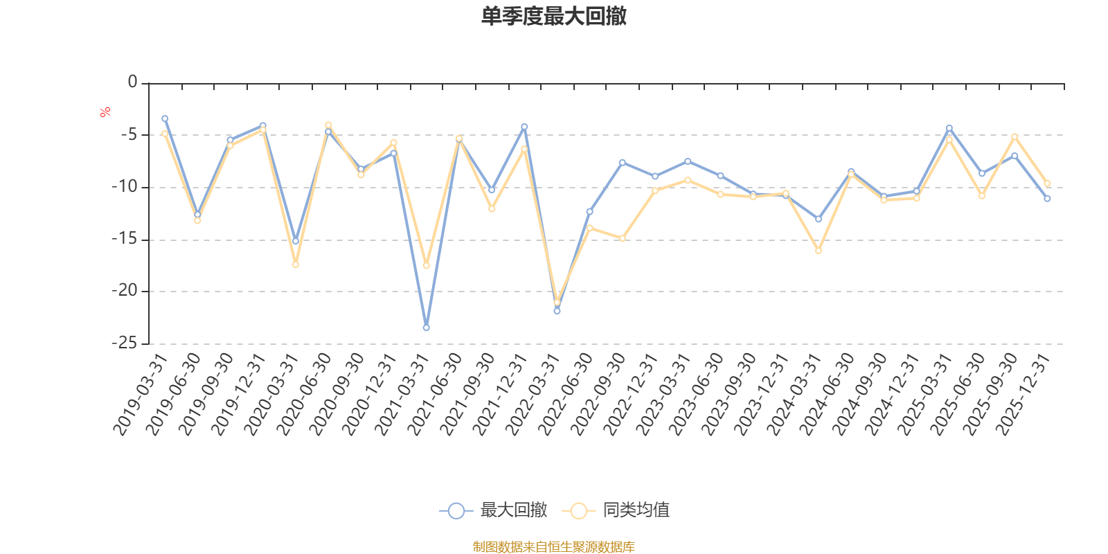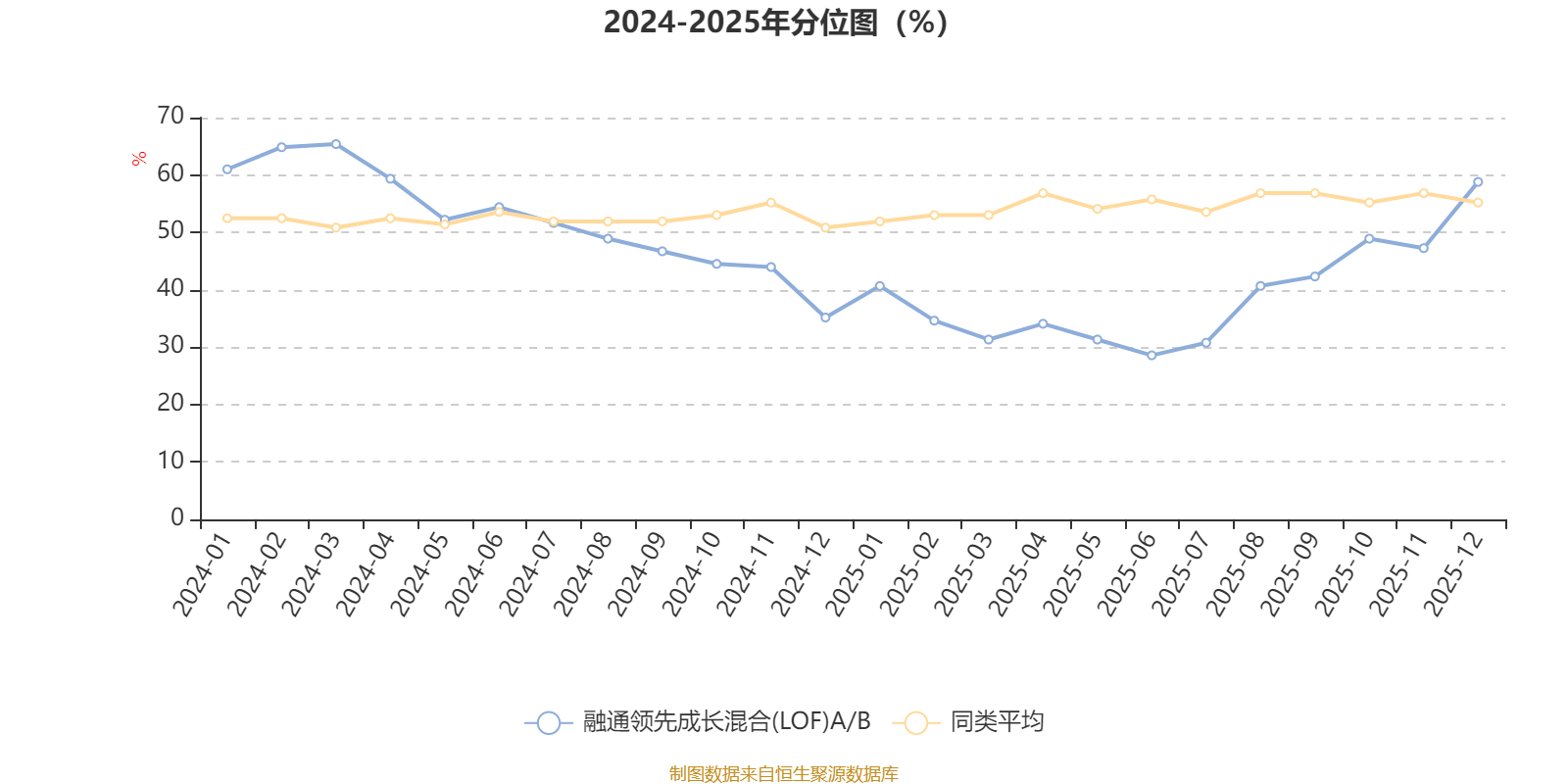 通过所选区间该基金净值增长率分位图,可以观察该基金与同类基金业绩比较情况。图为坐标原点到区间内某时点的净值增长率在同类基金中的分位数。
